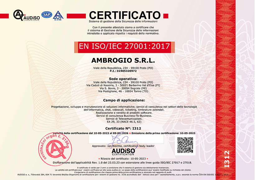 Questi standard internazionali garantiscono che abbiamo implementato un sistema di gestione della sicurezza delle informazioni efficace, riducendo il rischio di incidenti di sicurezza e migliorando la fiducia dei nostri clienti e stakeholder.​